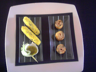 Rice-cheese stix with spicy guava jam & ham in mashpotatoe roll